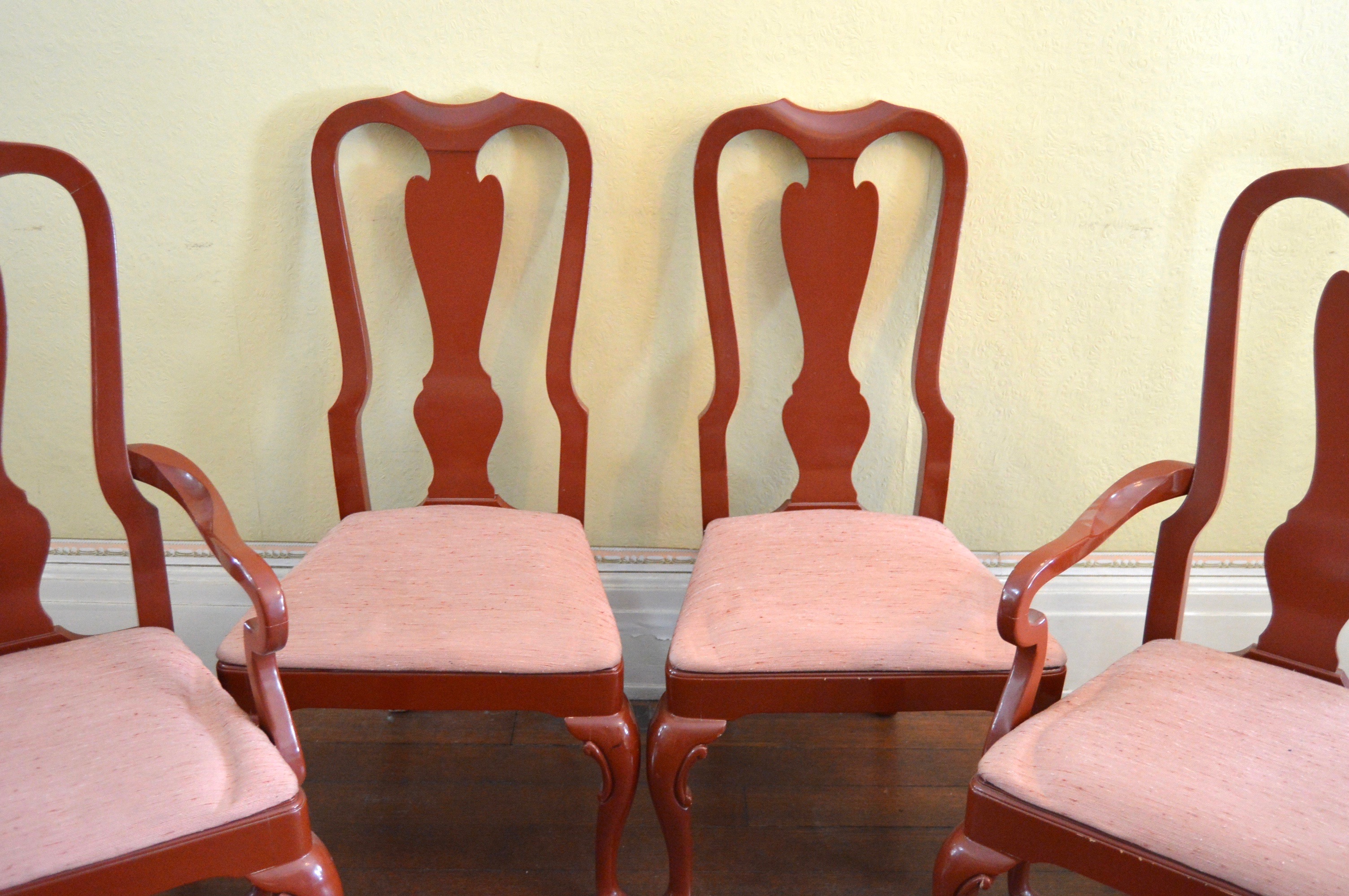 Vintage set of 4 karges queen anne dining chairs usa green & gold trim sturdy. Buy queen anne dining chairs and get the best deals at the lowest prices on ebay! Amish queen anne dining room chair. This dining chair combines a distinctive camel back and elegant queen anne style legs to create a wonderful statement of taste and refinement. I have recovered the chairs and replaced drapes over the years.