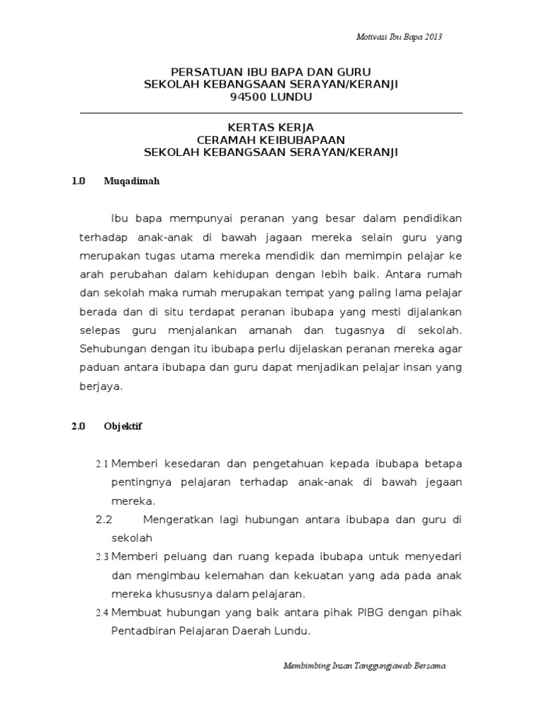 Related : Contoh Kertas Kerja Program Motivasi : Kertas kerja (hanya dalam bahasa melayu kecuali nama khas & jika melibatkan pelajar 14.0 tentatif program rujuk lampiran b..