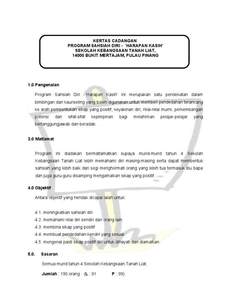 Contoh Kertas Kerja Program Motivasi : Kertas kerja (hanya dalam bahasa melayu kecuali nama khas & jika melibatkan pelajar 14.0 tentatif program rujuk lampiran b.